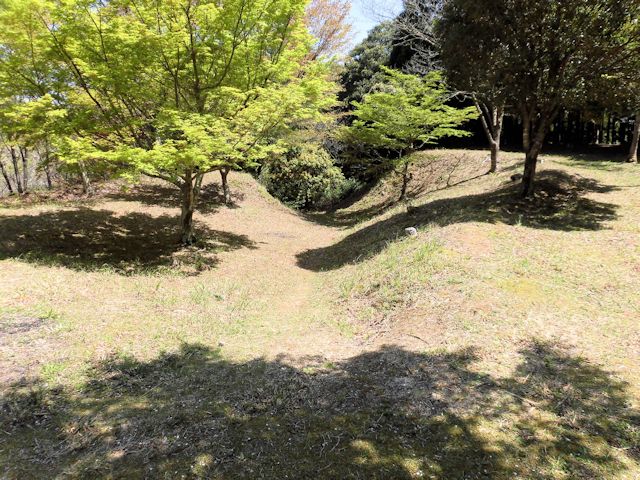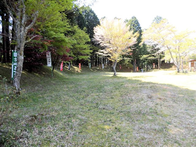 2018/04/21 古宮城址のスタンプを作手歴史民俗資料館でゲットしたので、本日最後の訪問先、「作手亀山城跡」(ここでは京都府や三重県にある同名「亀山城」と区別する為、「作手亀山城」とします)に向うことにします。 資料館から戻ること車で僅か3分程で到着です。 今回の城巡りの拠点にしていた道の駅「つくで手作り村」の裏山に大きな「亀山城跡」の看板を、どうして見落としたのでしょう。 恐らく道の駅の掲示板と道路脇の道案内に気を取られていたのが原因だと思います。 おかげで順路(本来巡るべき順路は「石橋城跡」→「作手亀山城跡」→「古宮城跡」→「文珠山城跡」)が支離滅裂となりましたが、兎に角目標は目の前ですから慌てずに登城しましょう。 登り口は80m位の勾配ですが、低い丘陵地に囲まれた盆地状の土地で、平坦な曲輪が多く比較的歩き易く、家族ずれでも登城して楽しめるスペースや四季の樹木を味わうことができます。 [ 歴史 ] 「作手亀山城」は、応永31年(1424)に奥平貞俊によって築城されました。 貞俊は天授年間(1375~1380)に現在の群馬県から、この地に移り住んで「川尻城」(「古宮城」より北に約500mの位置)を築いた後、この「作手亀山城」を築城してここに居城したとされています。 [ 豆辞典 ] 奥平氏の子孫信昌(初名は貞昌)は天正3年(1575)「長篠の戦い」で徳川方として功績あげ歴史に名を残しました。